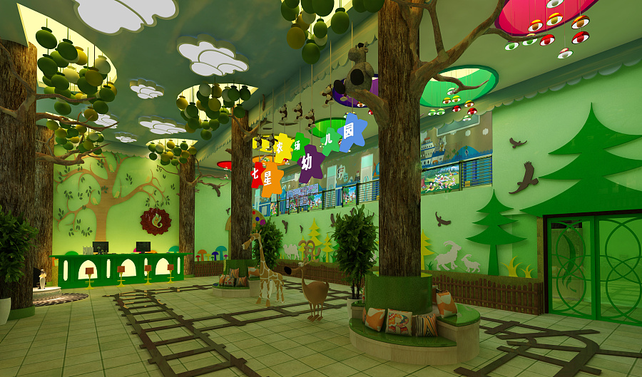 森林系的墻面空間設(shè)計(jì),盡情發(fā)散思維,幫助小孩更加放松,簡(jiǎn)潔幫助對(duì)大自然的熱愛(ài)。