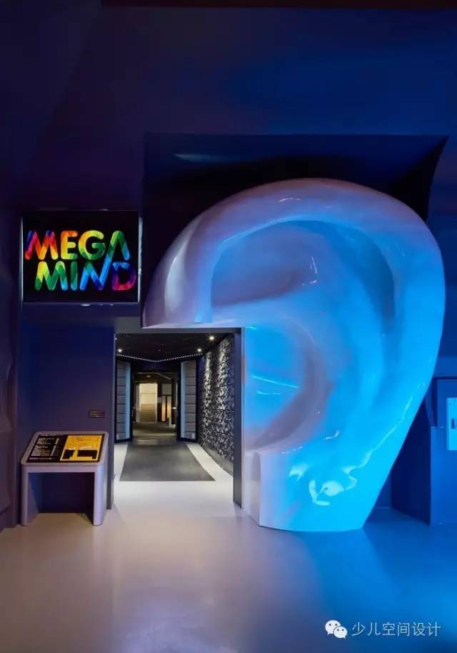 我們對(duì)最強(qiáng)大腦建筑風(fēng)格的愿景是基于一種對(duì)人類(lèi)大腦的詮釋。游客從入口通過(guò)耳狀空間進(jìn)入格狀中間區(qū),它是發(fā)送和接收通信數(shù)字脈沖流和信息的樞紐。