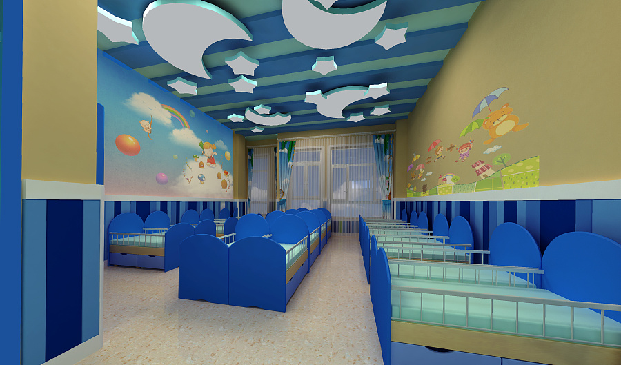 二、直、曲配合效果更柔美:如果你嫌房間的裝飾線條太直、太硬,你便可以在吊頂中加入曲線的設計,利用線條的延伸與柔美讓房間從視覺感官上進一步發生一點變化。(幼兒園設計)