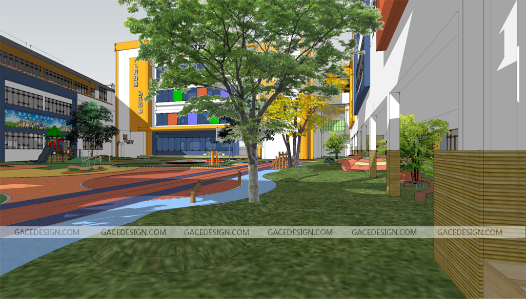 為此,建筑風(fēng)格要均勻協(xié)調(diào),活潑多樣,色彩要明快清新,保證每個幼兒有20平方米的樹木或10平方米草地的占有率;不能忽視建筑的通風(fēng)、音響效果、照明。