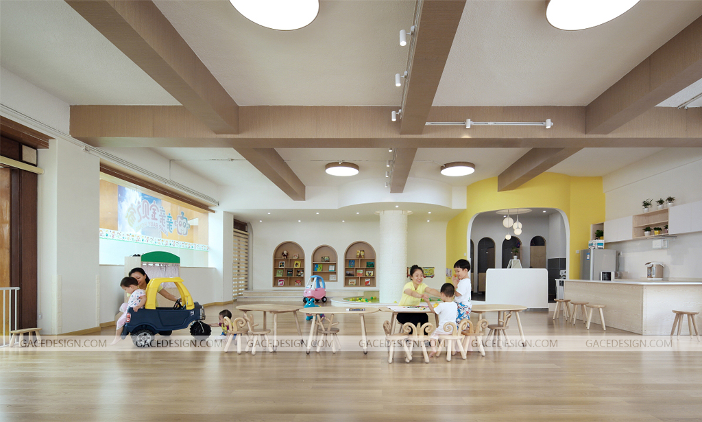 由于幼兒的活動力強(qiáng),所以在早教中心室內(nèi)空間的選材上,宜以柔軟、自然素材為佳,如地毯、原木、壁布或塑料等。這些耐用、容易修復(fù)、非早教中心設(shè)計(jì)高價的材料,可營造舒適的睡臥環(huán)境,也令家長沒有安全上的憂慮。