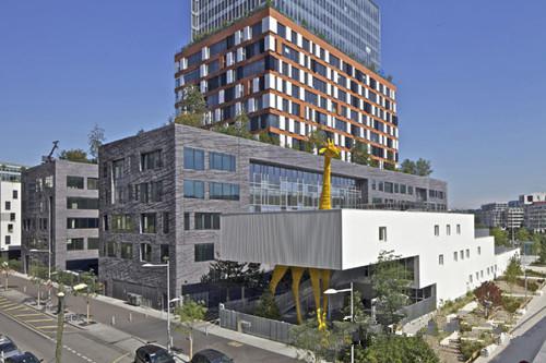 對于兒童來說,去醫(yī)院是非常恐怖的一件事,但在巴黎,新的“長頸鹿兒童看護中心”卻能讓孩子們心頭的恐懼消散。Hondelatte Laporte事務(wù)所設(shè)計的這座建筑帶有很強的趣味性,是智能建筑設(shè)計的典范。該事務(wù)所介紹說,看護中心變成了一個講故事的地方,也是城市叢林的一個隱喻。動物和樹木將建筑與自然和運動聯(lián)系起來。“長頸鹿”是一道標示,無論從哪個角度望過來都清晰可見。要進入看護中心,人們必須穿越“長頸鹿”的四條“腿”,看上去十分獨特。一只“北極熊”正攀爬在一側(cè),一群“瓢蟲”則穿越立面,活靈活現(xiàn),非常有趣。