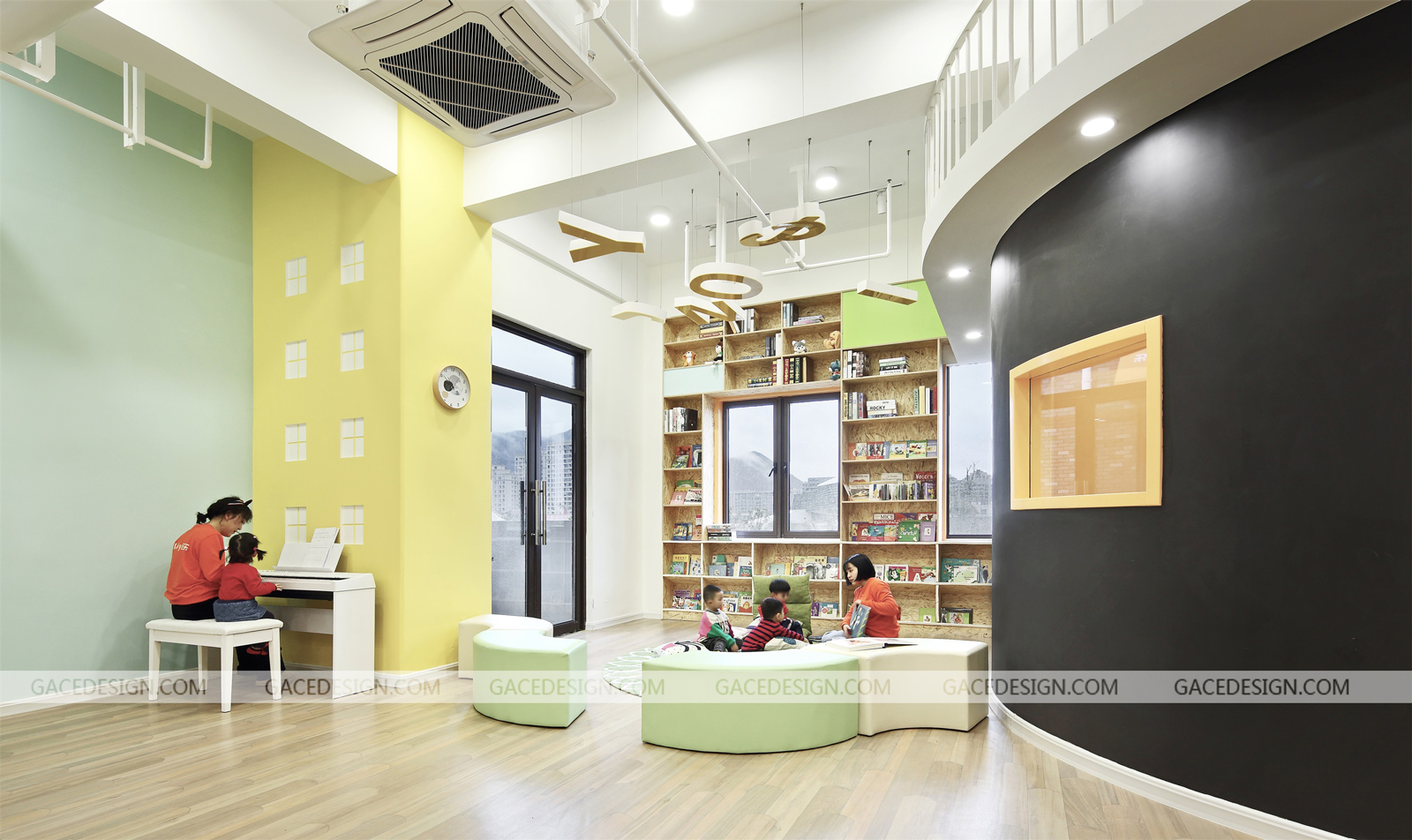 層高:早教中心教室的層高,從3米一直到4米,在不斷增加。高大的空間,優(yōu)越的采光條件,使得早教中心更加通透、舒適。而隨著層高的增加,可以在室內(nèi)架設(shè)閣樓,將睡眠室放到上面,節(jié)約空間。這是層高增加的非常重要的一個(gè)因素。但層高不能超過(guò)4.5米,過(guò)高容易導(dǎo)致幼兒心理不舒服;同時(shí)降低采暖、制冷效率,浪費(fèi)能源。